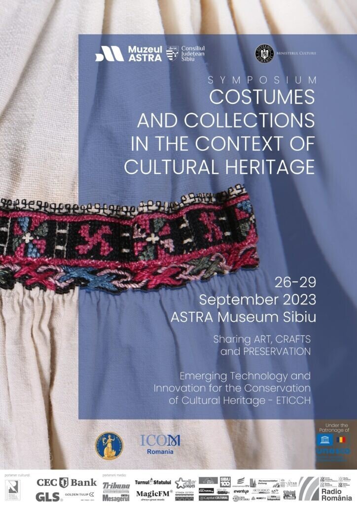 Muzeul ASTRA, instituție ale cărei acțiuni sunt posibile prin finanțarea Consiliului Județean Sibiu, organizează simpozionul Costume și Colecții în Contextul Patrimoniului Cultural. Comunicăm despre ARTĂ, MEȘTEȘUGURI ȘI CONSERVARE, care are loc în perioada 26-29 septembrie.