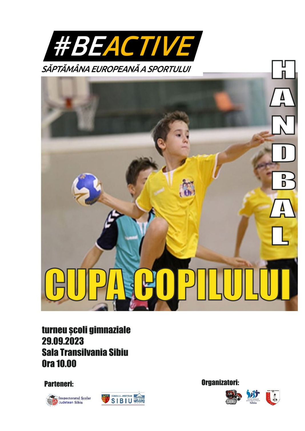 Pe 29 septembrie Sala Transilvania va găzdui Cupa Copilului la Handbal, un turneu de handbal cuprins în Săptămâna Europeană a Sportului. Turneul începe de la ora 10.