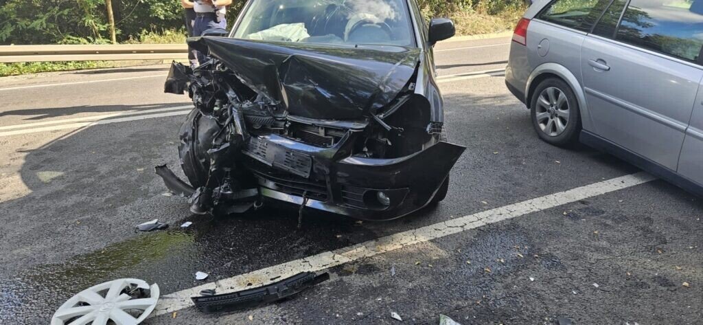O coliziune frontală între două mașini s-a produs astăzi, DN 14, la km. 11+300, între Șura Mare și Slimnic.