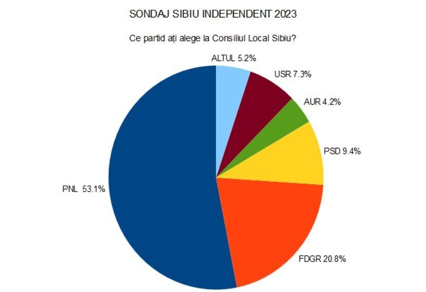 Sondajul reflectă intenția de vot a sibienilor acum. Reamintim că alegerile locale și parlamentare vor fi anul viitor în toamnă.