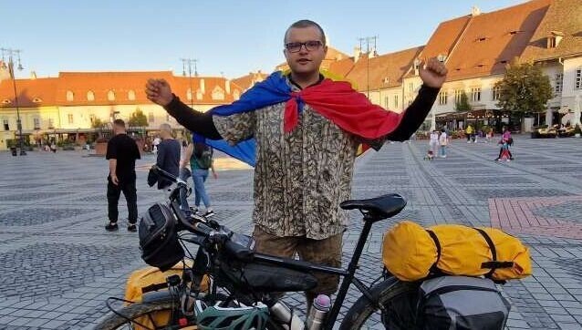 Tânărul care a străbătut atâtea ţări pe bicicletă îşi doreşte ca şi la Sibiu oamenii să pedaleze mai mult.