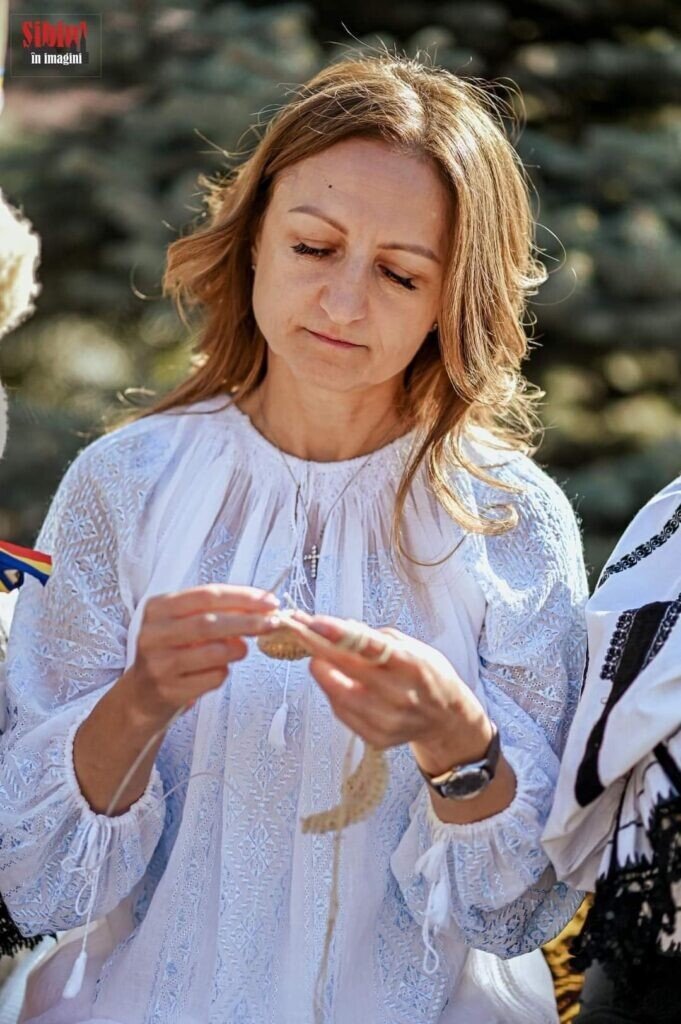Apoi a arătat că și ea știe să tricoteze lâna. Primăria Sadu a organizat șezătoare la Căminul Cultural și în piața centrală din Sadu pentru a arăta cum se păstrează tradiția transformării lânii în diferite articole vestimentare sau pentru locuință.