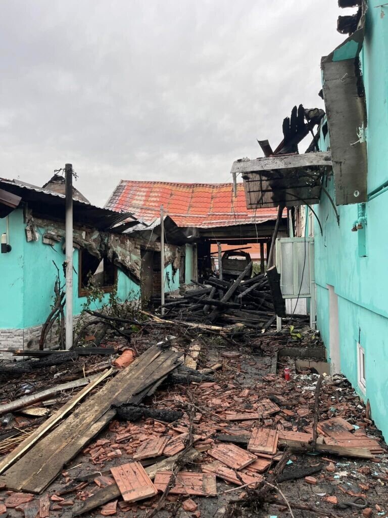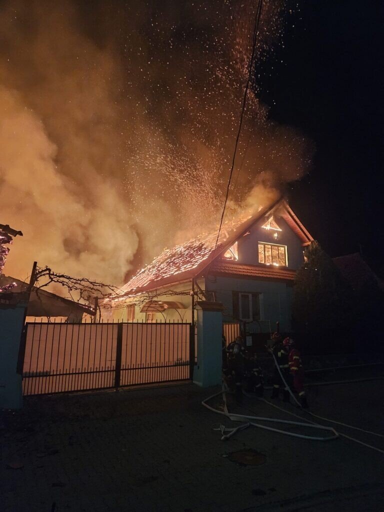 Incendiul s-a întins la casa de lângă pe care a distrus-o în totalitate. Aici era și un service auto și o mașină. Toate bunurile din locuințe au fost complet distruse. Două familii au rămas fără locuință în prag de iarnă.
