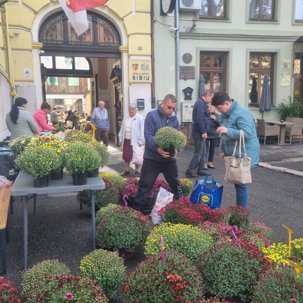 După o aprovizionare consistentă cu atâtea produse, puteți alege să plecați spre casă sau spre locul de muncă cu un ghiveci cu crizanteme de diferite culori, care să vă înveselească multe zile, flori pe care le găsiți la standul domnului Florin Opriță din Sibiu. De asemenea, buchete de flori vor fi și pe masa doamnei Angela Novac din Șura Mică, alături de dovleci ornamentali și de lavandă.