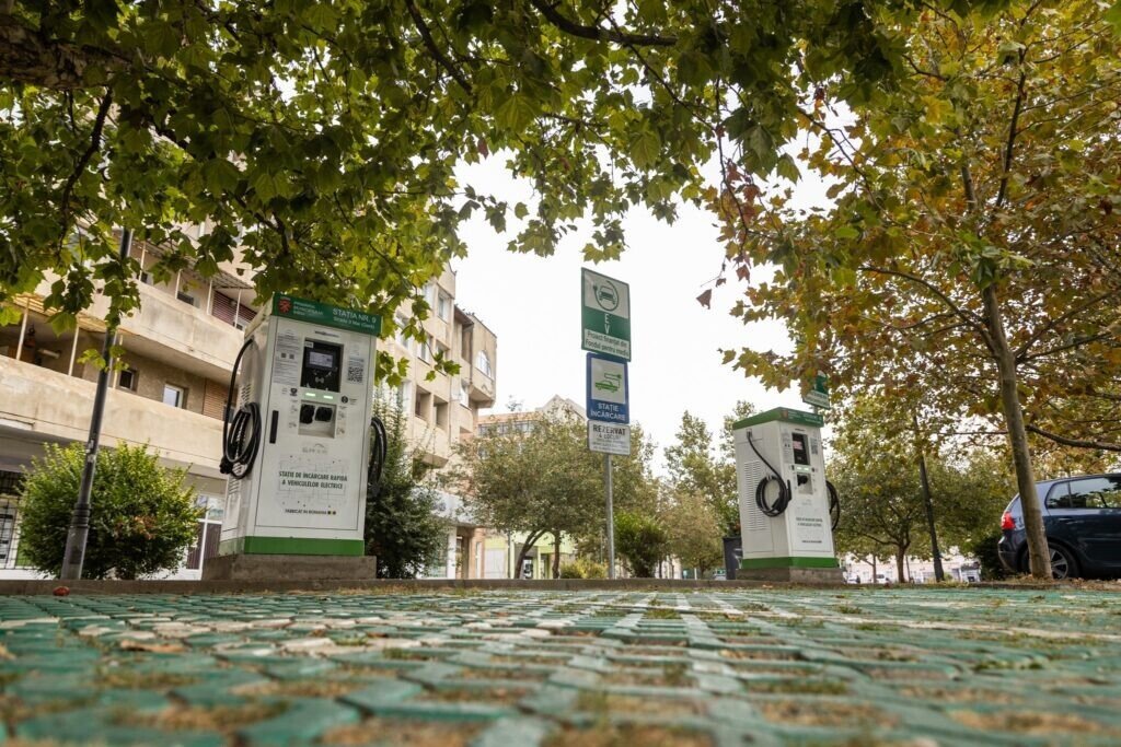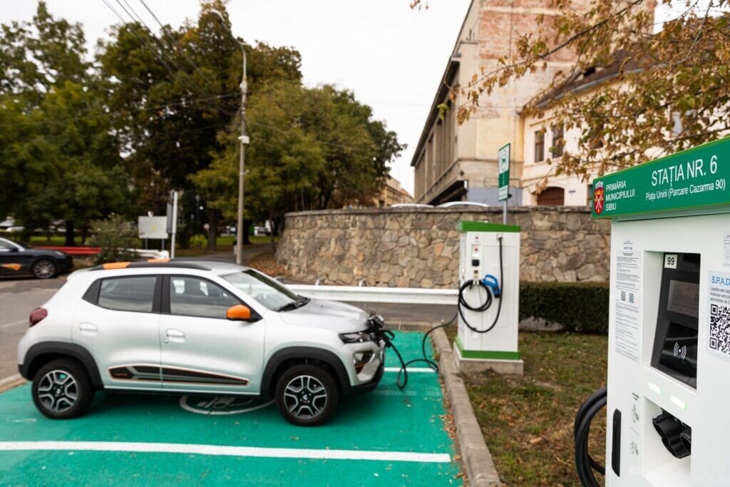 Primăria Sibiu a finalizat instalarea a 10 stații publice de încărcare a autovehiculelor electrice în 8 locații din Sibiu și le-a pus în funcțiune vineri, 13 octombrie: