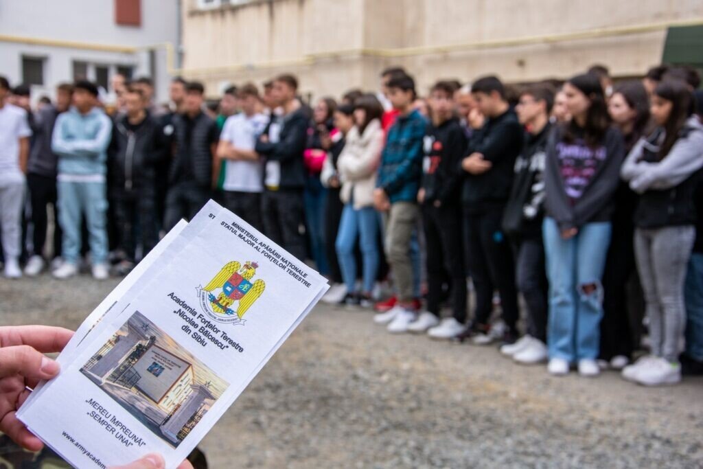 Academia Forţelor Terestre „Nicolae Bălcescu” din Sibiu, în colaborare cu Biroul informare-recrutare din cadrul Centrului Militar Zonal Sibiu, a participat astăzi, 13 octombrie, în incinta Colegiului Economic „George Barițiu” din Sibiu, la proiectul ,,Ziua Armatei României în şcoli”.