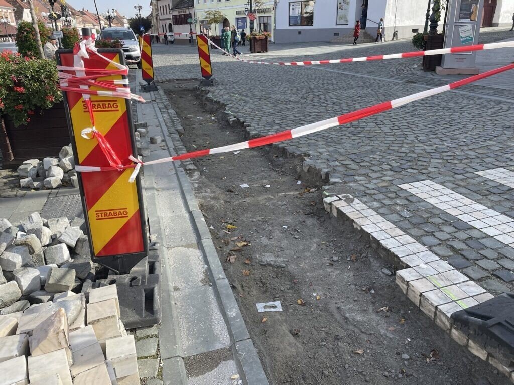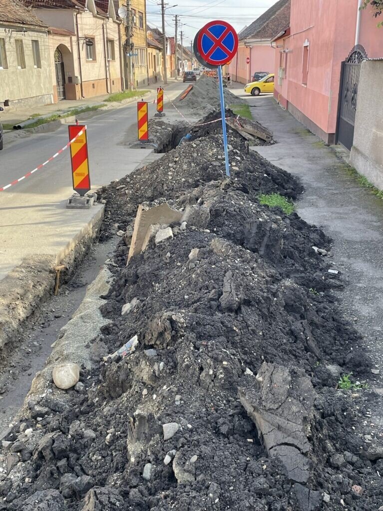 Firma contractată de APĂ CANAL SA SIBIU a cerut avize de săpături pe străzile Țesătorilor, Șelimbărului, Măgurii și Lungă. Plus unul în zona pietonală din centru. Doar că lucrările demarate în iulie au început să treneze. Primarul Huja a declarat că a mers periodic pe teren, deși nu este lucrarea Primăriei Cisnădie. El a observat că la acest proiect nu lucrează NICIUN angajat al firmei STRABAG.