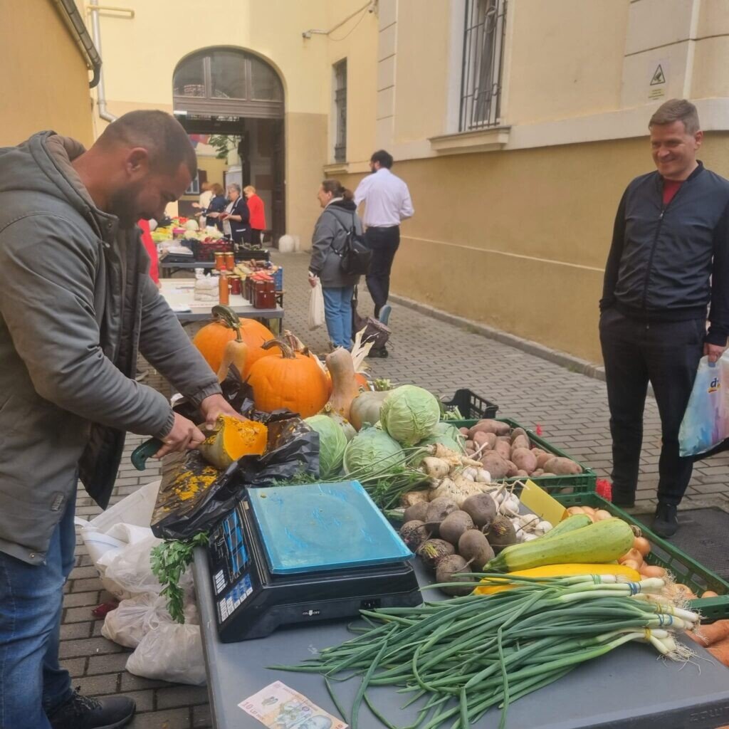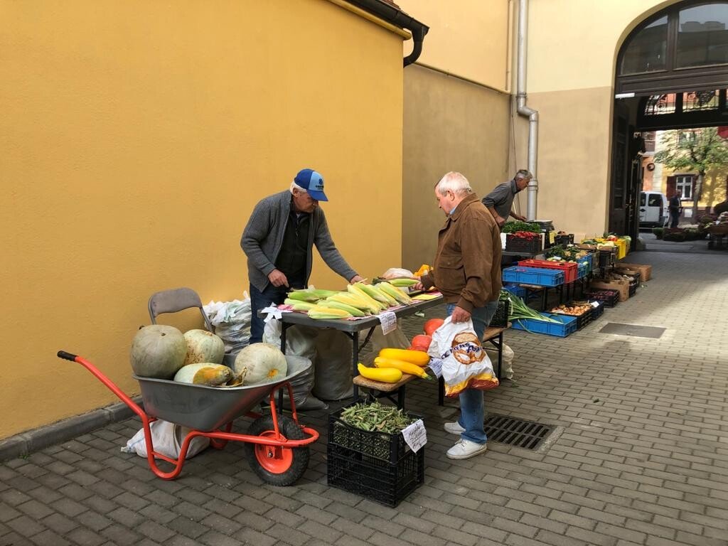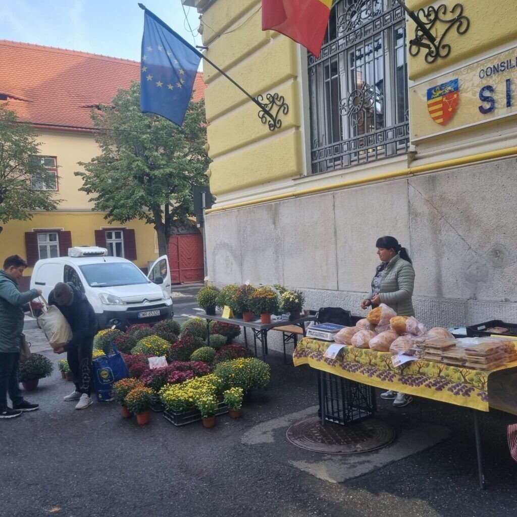În intervalul orar 9-13, sibienii din centrul Sibiului și cei care lucrează în zona centrală sunt așteptați să își facă aprovizionarea pentru week-end cu produse lactate și de carmangerie, cu legume și fructe, cu pâine de casă și dulcețuri. Nu vor lipsi florile de sezon, precum crizantemele în ghiveci aduse de familia Opriță, care le cultivă în comuna Cristian.