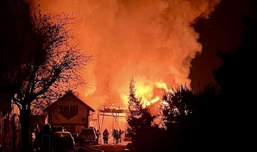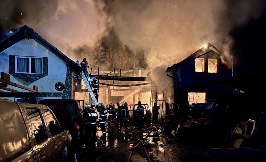 Incendiul a izbucnit la o un garaj în care se aflau trei autoturisme, ulterior extinzându-se și la două case învecinate.
