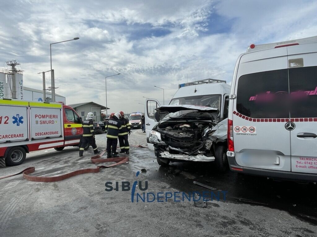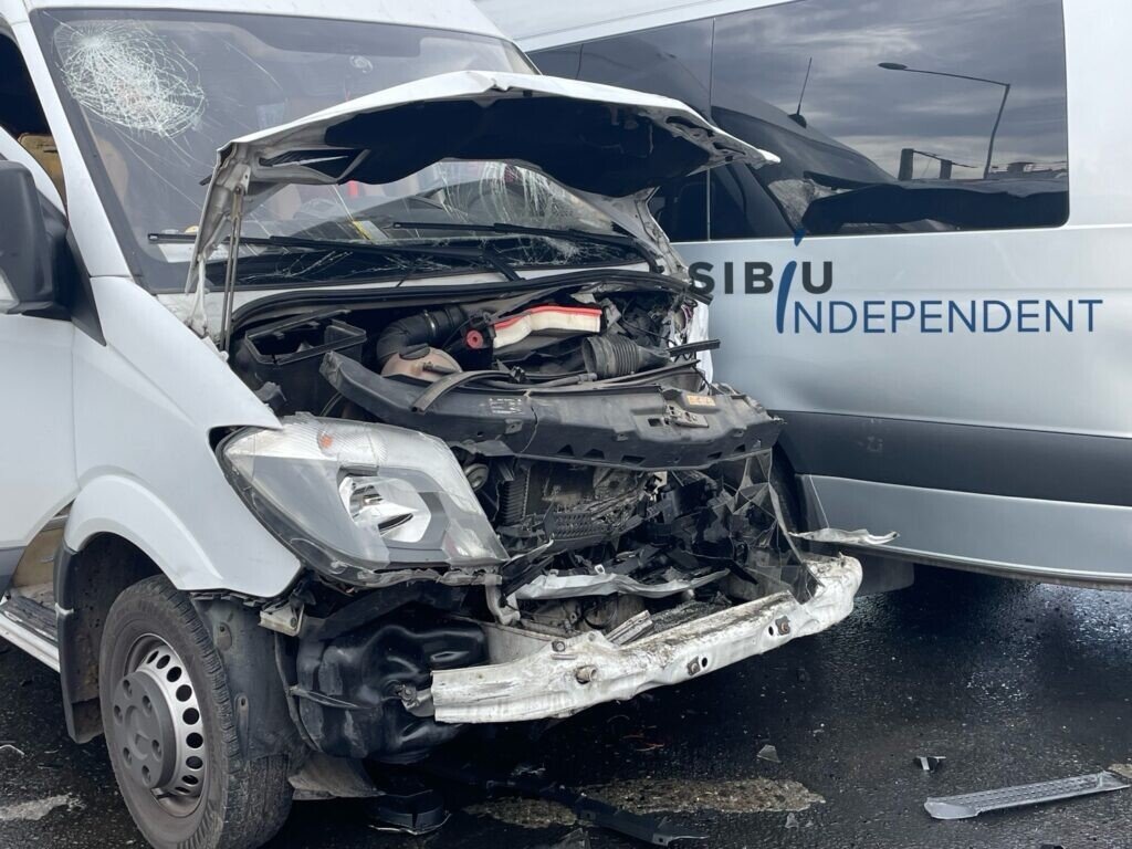Din primele cercetări efectuate de către polițiștii rutieri a rezultat că, în timp ce conducea un microbuz destinat transportului de persoane pe DJ 143B, Rusciori – Sibiu, o femeie în vârstă de 44 de ani, din județul Vâlcea, a pătruns în intersecția cu strada Salzburg și a intrat în coliziune cu un alt microbuz destinat transportului de persoane condus dinspre A1 spre aeroport de către un medieșean în vârstă de 49 de ani.
