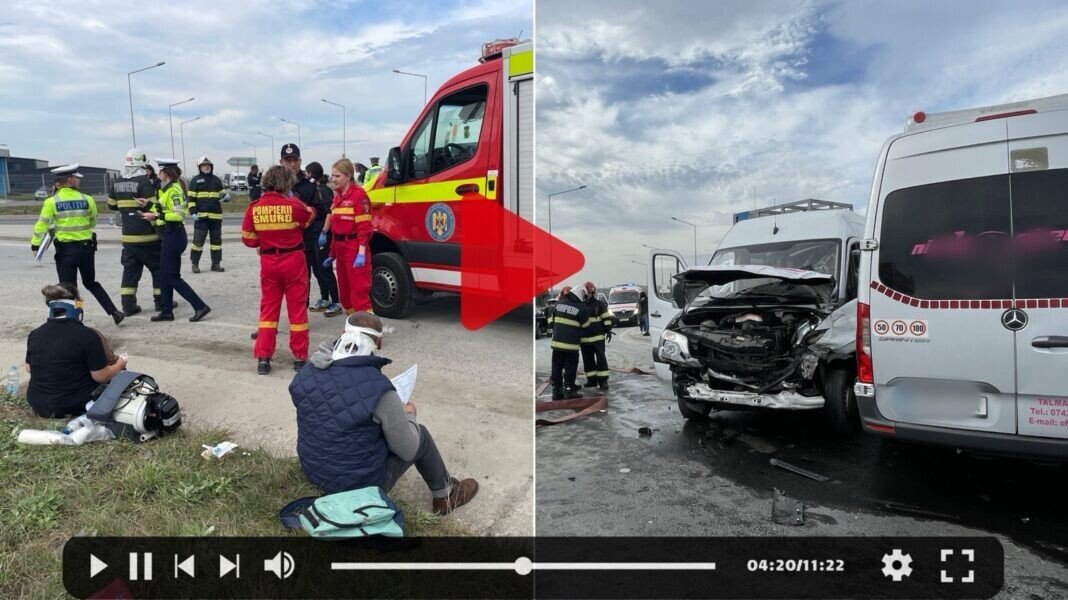 Patru persoane au avut nevoie urgentă de îngrijiri medicale iar alte 15 au suferit traumatisme și escoriații, după ce două microbuze de transport persoane s-au ciocnit la intersecția Calea Șurii Mici cu strada Strasburg.