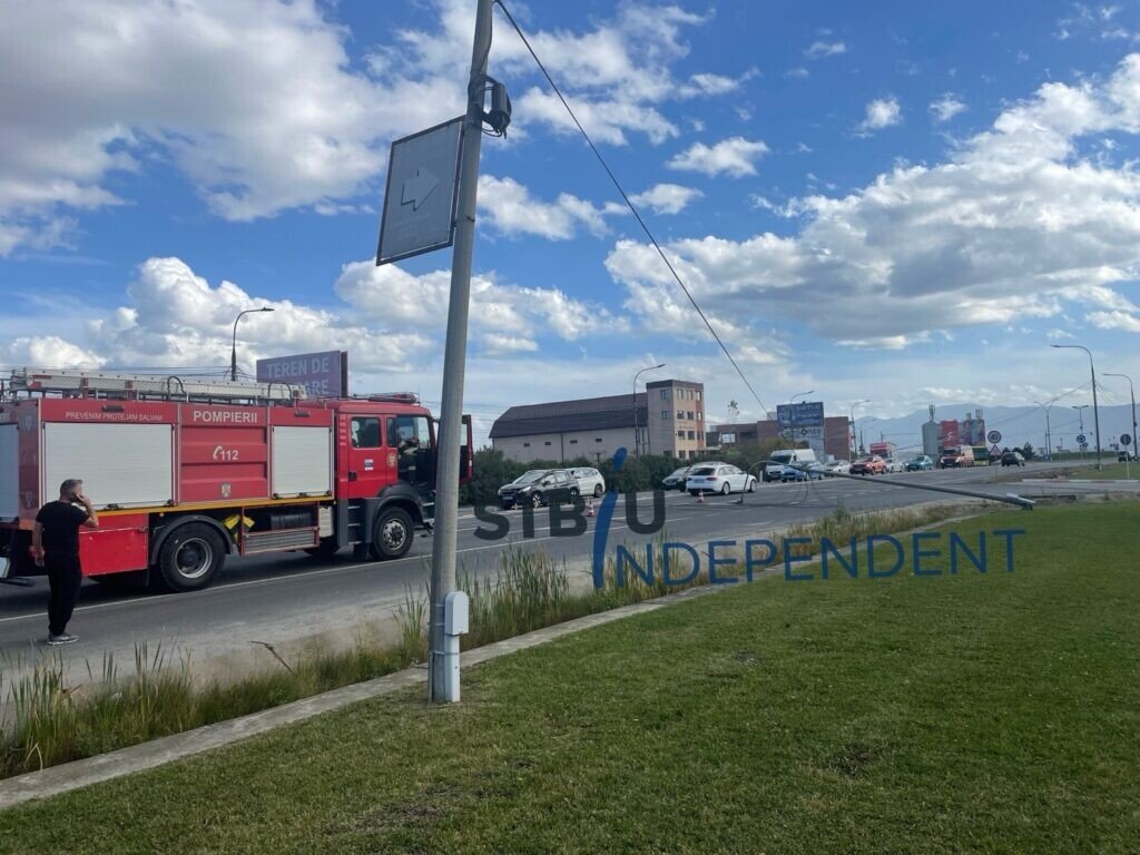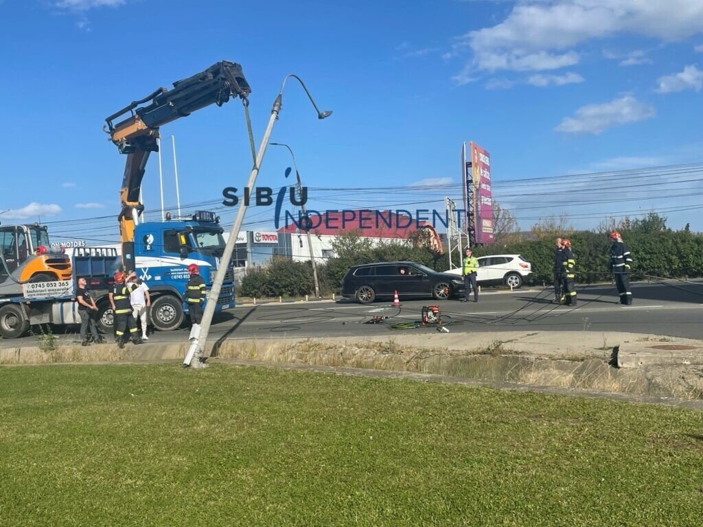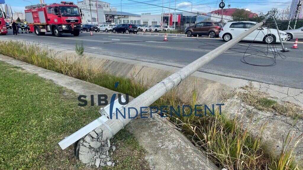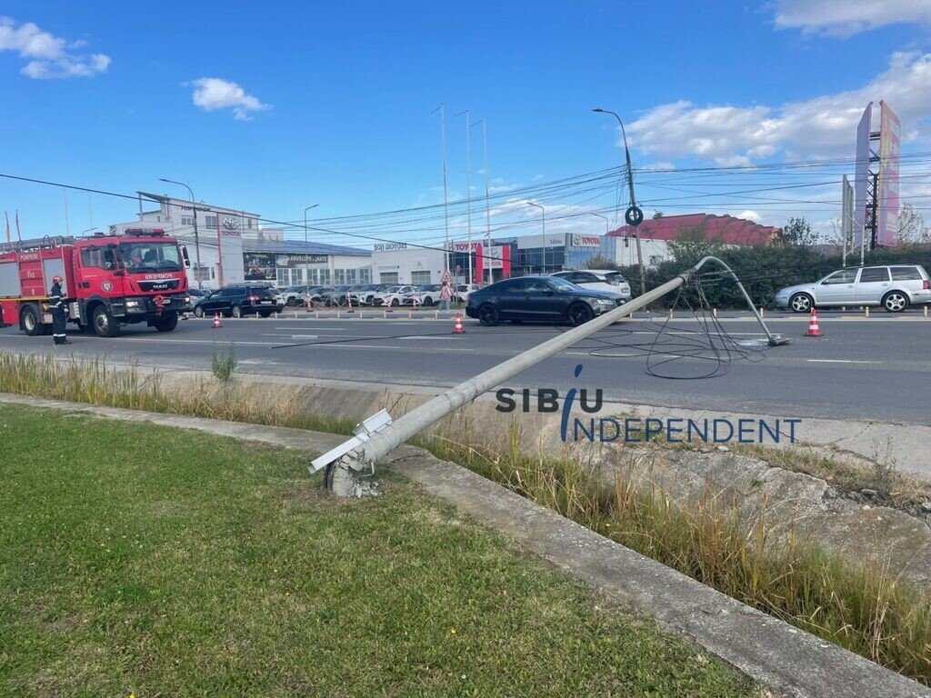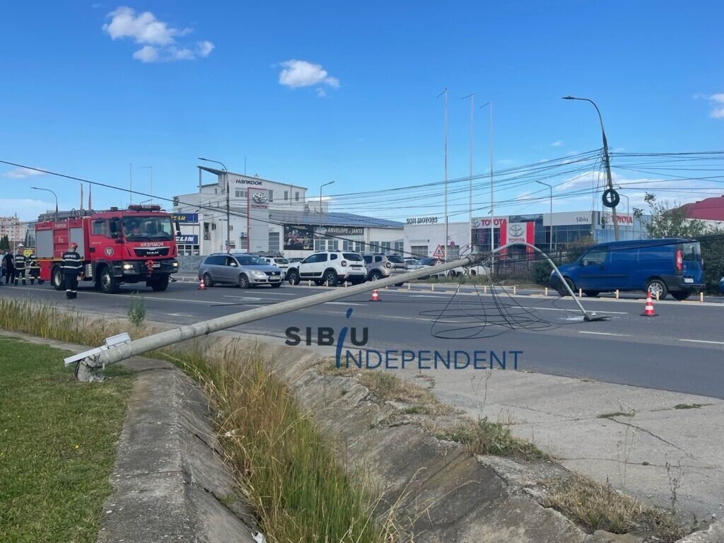 O tragedie rutieră se putea întâmpla astăzi, la ieșire din municipiul Sibiu spre Veștem. Un stâlp de iluminat stradal s-a rupt și a căzut pe carosabil, la doi pași de Shopping City Sibiu.