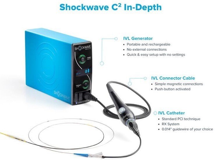 Litotriția intravasculară (terapia shockwave) este o tehnologie inovatoare, fiind concepută pentru a aborda leziunile cardiologice intens calcifice, cu ajutorul unui dispozitiv special. Acesta este alcătuit din: consola principală și consumabilele de unică folosință.