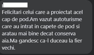 „Felicitări celui care a proiectat acel cap de pod. Am văzut autoturisme care au intrat în capete de pod și arătau mai bine decât conserva aia. Mă gândesc că îl duceau la fier vechi” (N.R.: în zonă este un sediu Remat)