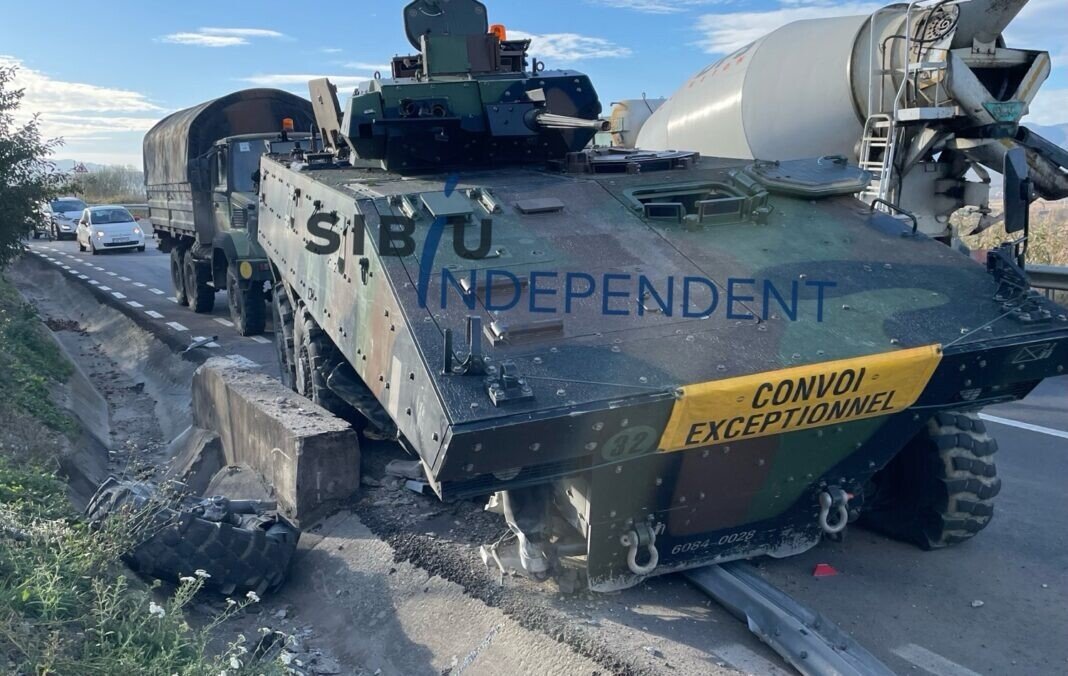 Ziarul SIBIU INDEPENDENT a prezentat de dimineață un accident inedit în care un TAB militar a lovit un cap de pod. Fără victime, dar cu roata dreapta față ruptă și TAB-ul puternic avariat, știrea a făcut amuzamentul internauților.