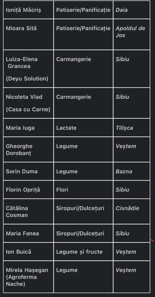 Sibienii sunt așteptați la cumpărături între orele 9-13 de către următorii producători locali: