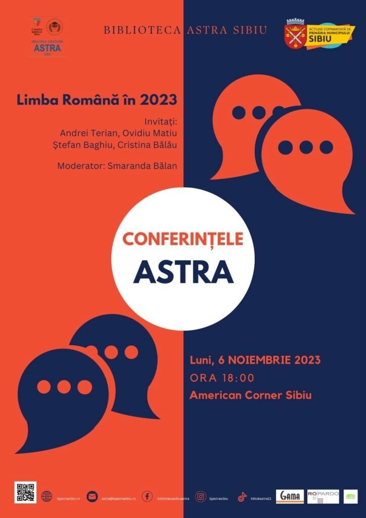 Limba Română în 2023 este tema care va fi abordată luni, pe 6 noiembrie, la Biblioteca ASTRA, într-o nouă întâlnire, în cadrul proiectului „Conferințele ASTRA”, cofinanțat de Primăria Municipiului Sibiu și susținut de Consiliul Județean Sibiu.