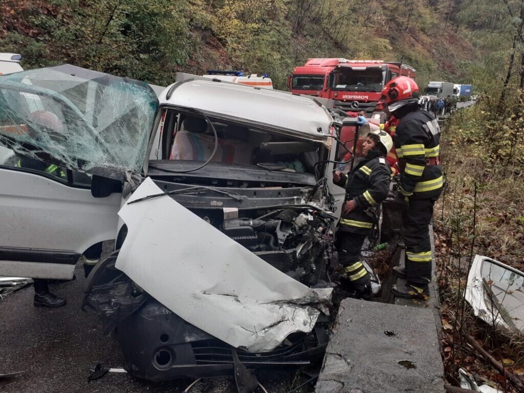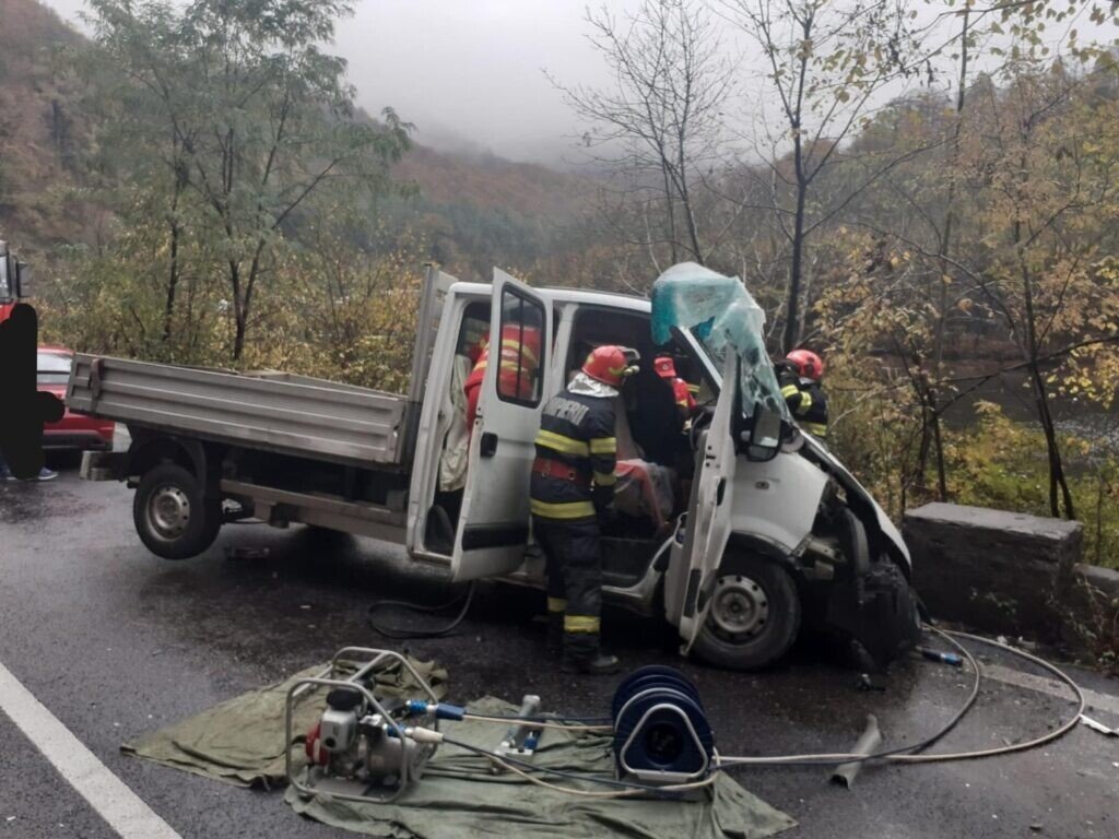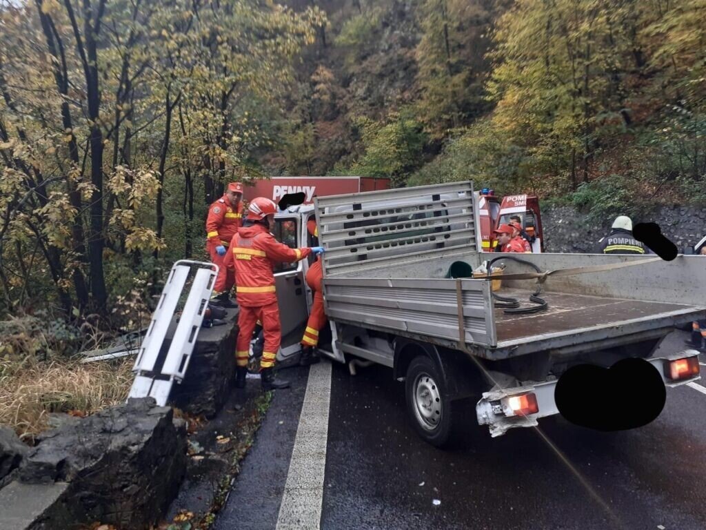 Traficul rutier din această dimineață este blocat total pe DN7, lângă localitatea Brezoi din județul Vâlcea. Aici, o autoutilitară și un autocamion au intrat în coliziune.