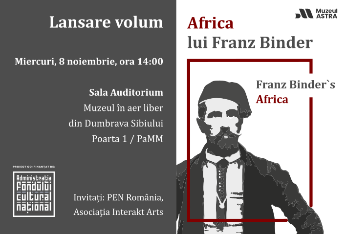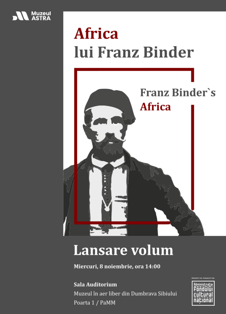 La 30 de ani de la înființarea Muzeului de Etnografie Universală Franz Binder, Muzeul ASTRA lansează volumul bilingv Africa lui Franz Binder / Franz Binder`s Africa. Lansarea va avea loc miercuri, 8 noiembrie 2023, de la ora 14:00, în sala Auditorium din PaMM (Pavilionul Muzeal Multicultural / Muzeul în aer liber din Dumbrava Sibiului / Poarta 1 de acces).