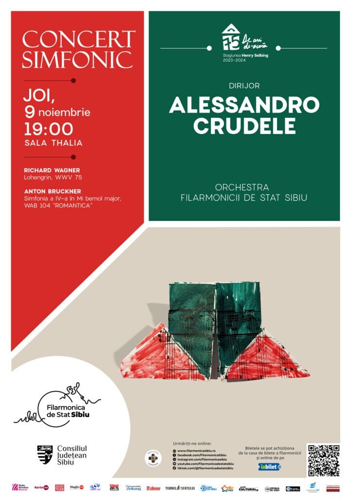 Programul serii este completat cu o altă lucrare simfonică de factură romantică: uvertura operei “Lohengrin” de Richard Wagner. Concertul va avea loc joi, 9 noiembrie 2023, de la ora 19:00, la Sala Thalia. Orchestra Filarmonicii de Stat Sibiu va fi condusă de maestrul Alessandro Crudele.