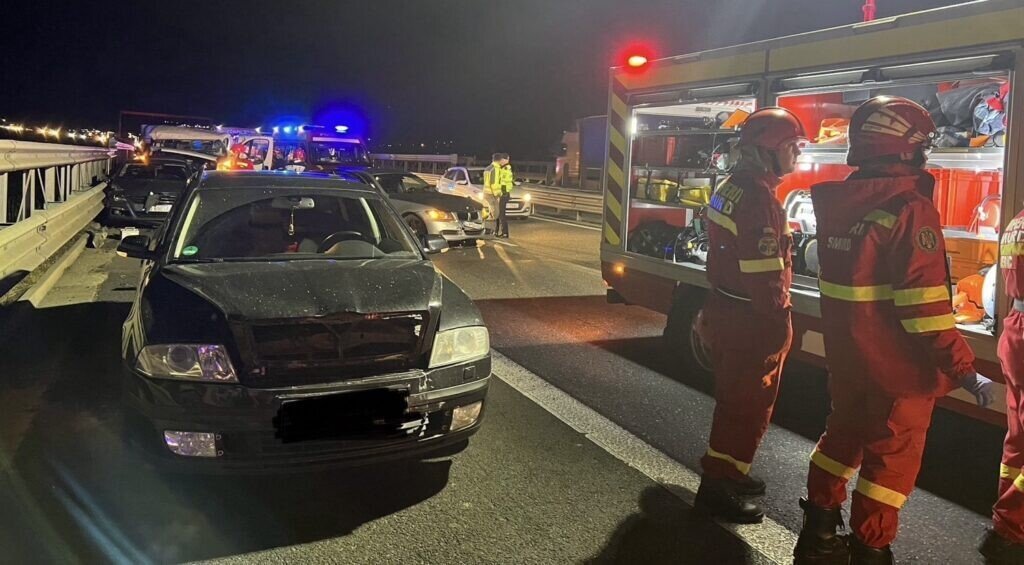 Mai multe echipaje ISU SIBIU și SAJ s-au deplasat de urgență pe autostrada A1, la ieșirea spre Cisnădie. Din primele informații, acolo s-a produs un carambol între mai multe autovehicule.