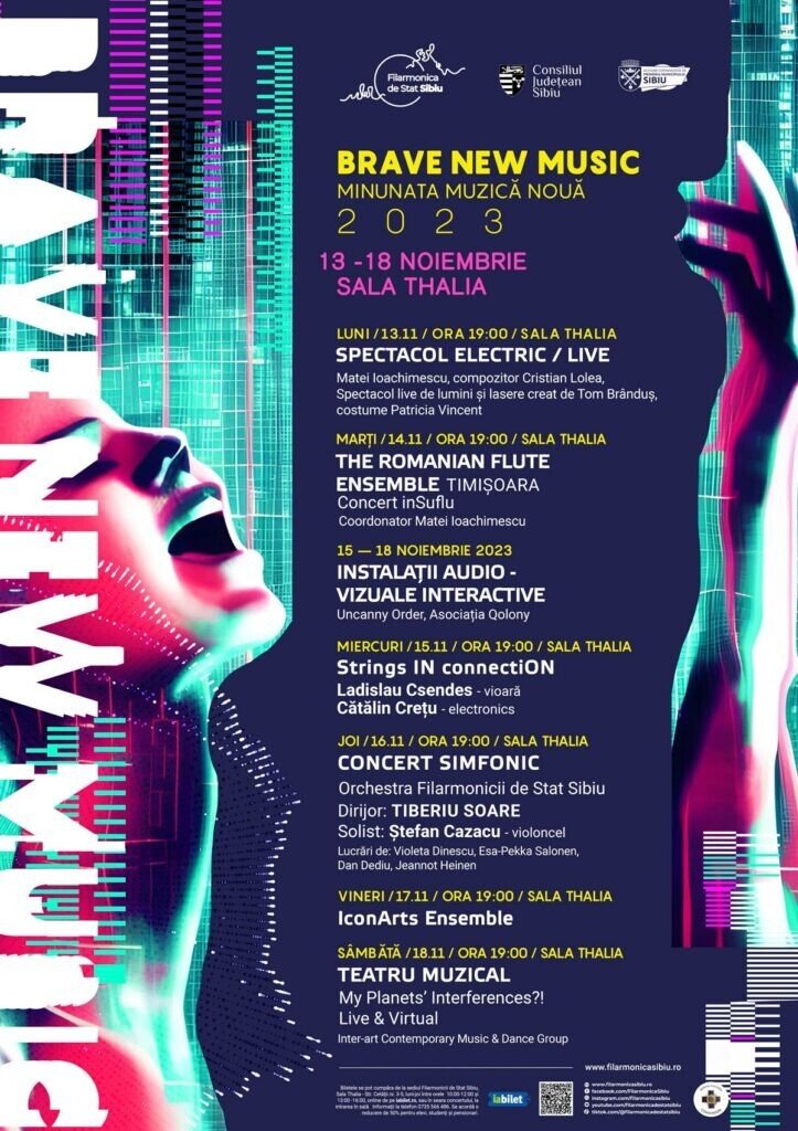 Cea mai curajoasă inițiativă artistică a Filarmonicii de Stat Sibiu din ultimii ani, festivalul Minunata Muzică Nouă / Brave New Music, revine în perioada 13-18 noiembrie cu șase evenimente muzicale provocatoare și o expoziție. Cea de a IV-a ediție a proiectului debutează astăzi, cu spectacolul “Electric”.