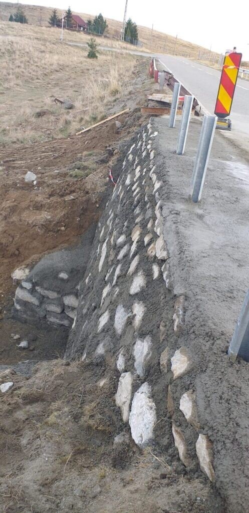 - reparații ziduri de sprijin cu zidărie din bolovani de râu DJ 106A între Arca Parc și Păltiniș (zona Castel Nor)