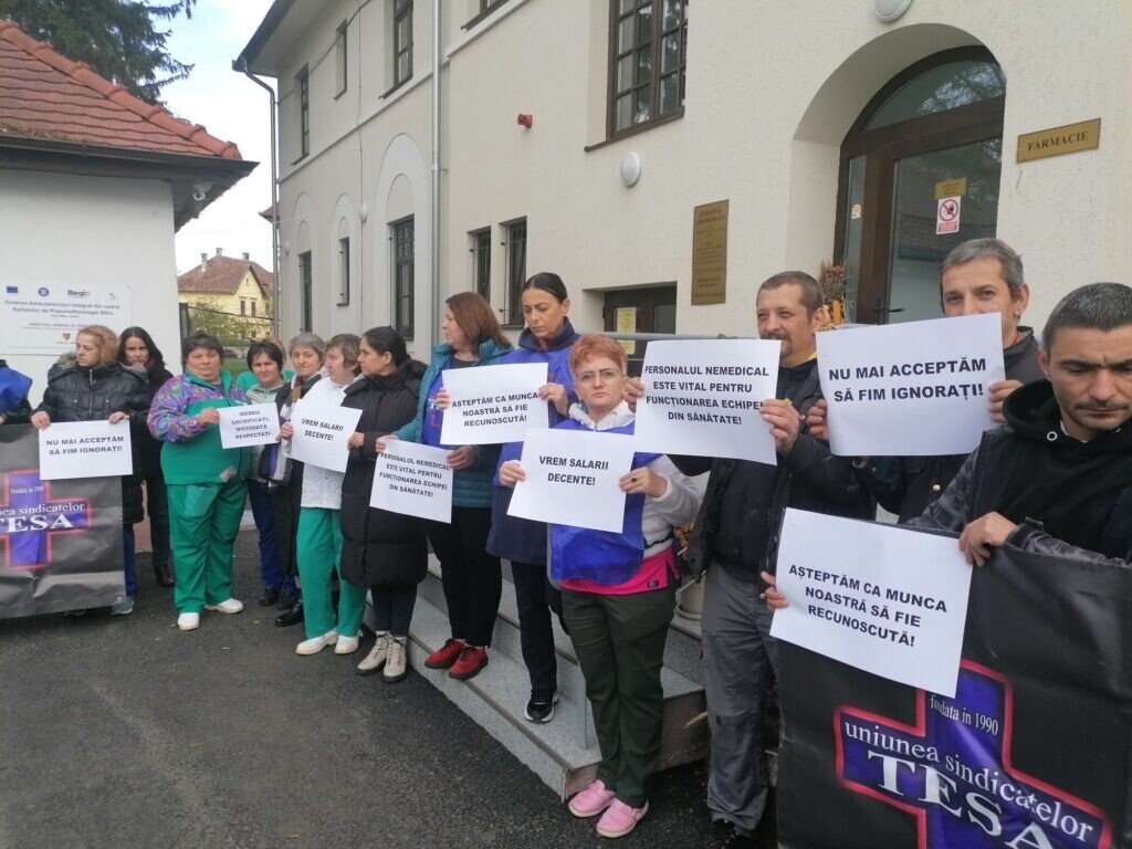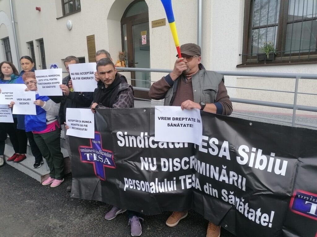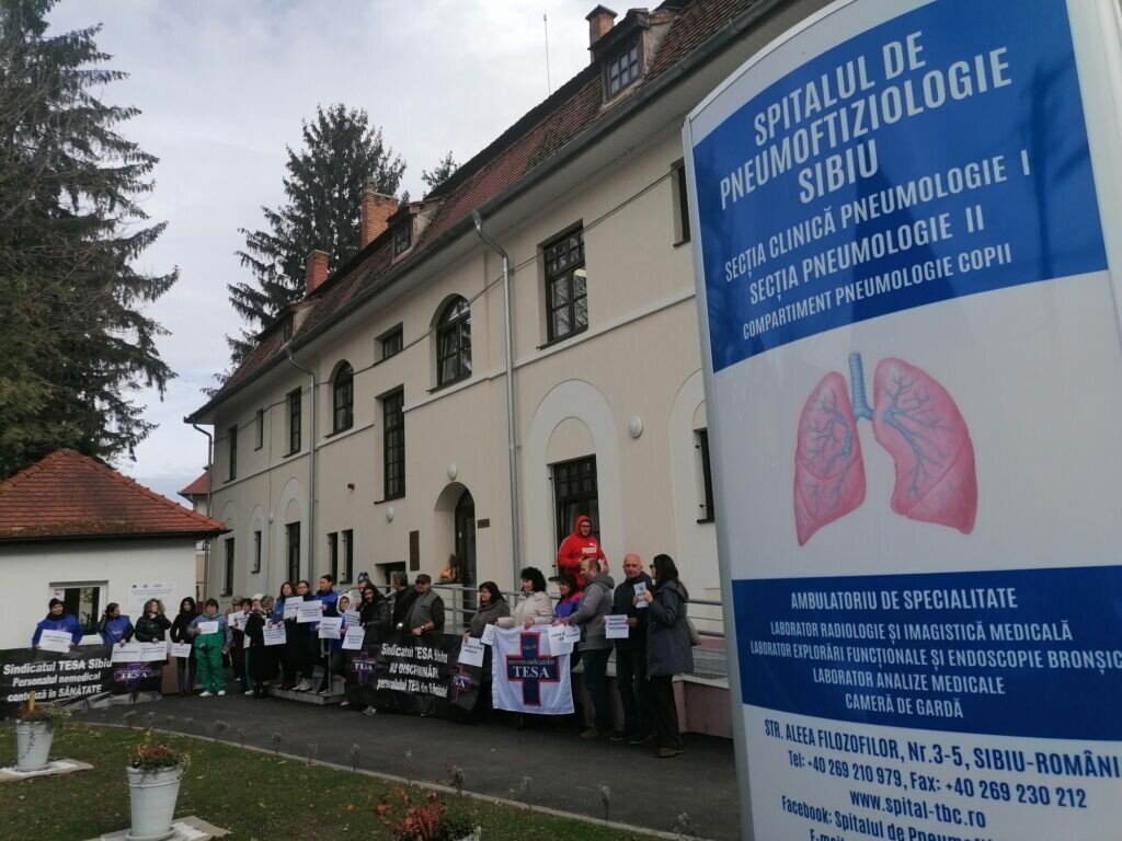 Personalul nemedical din Spitalul de Pneumoftiziologie (TBC) Sibiu și Spitalul de Psihiatrie „Dr. Gheorghe Preda” Sibiu, care sunt spitale de monospecialitate, protestează pentru a atrage atenția guvernanților cu privire la faptul ca prin legile și ordonanțele așa-zise „ale Austeritatii” pe care le-au adoptat succesiv în ultima perioada, există temeri întemeiate cu privire la faptul că veniturile salariaților ar putea scădea drastic. Vorbim despre pierderi cuprinse între 250 și chiar peste 1000 de lei, în condițiile în care este posibil ca pentru personalul nemedical să nu mai poată fi acordat cuantumul sporurilor pentru condiții deosebit de periculoase.