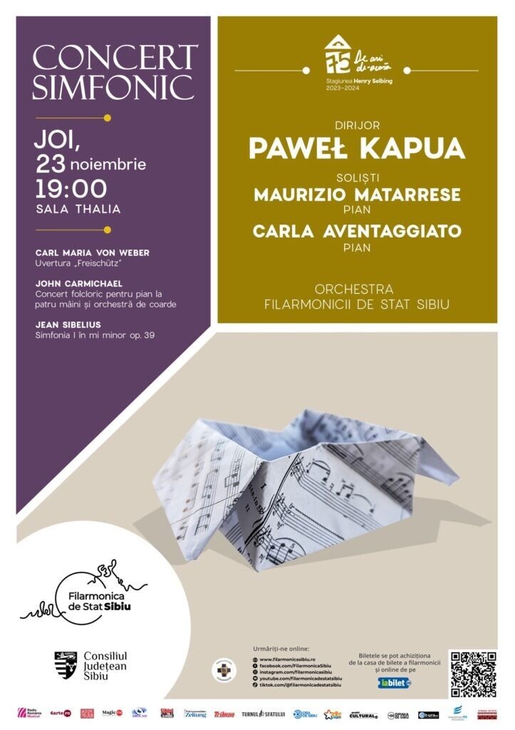 În această săptămână, Filarmonica de Stat Sibiu organizează un concert simfonic, două concerte educative cu „Spărgătorul de nuci” și o serie de ateliere creative adresate copiilor.