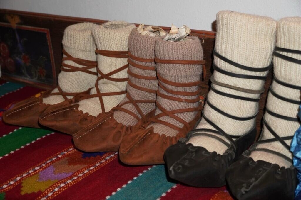 În muzeul familiei David – Coman, pe o laviță din lemn de brad, stau înșiruite câteva perechi de opinci, aidoma celor purtate de avrigeni la Marea Unire. Sunt din piele de vițel și înainte de a fi purtate sunt unse cu untură de rață. „Creștem rațe tocmai ca să avem untură pentru opinci. Așa le impermeabilizăm și, în plus, devin mai moi”
