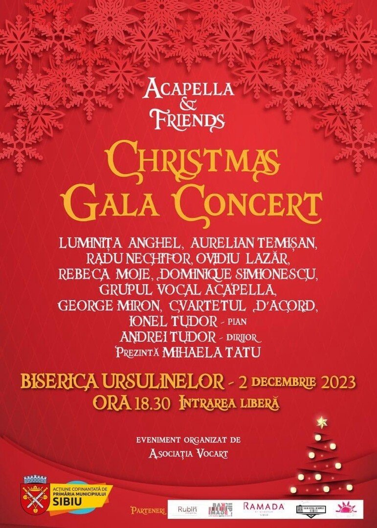 Christmas Gala Concert Acapella & Friends revine la Sibiu cu o nouă ediție. Evenimentul este organizat de Asociația Vocart și cofinanțat de Primăria Sibiu prin Agenda Culturală 2023.