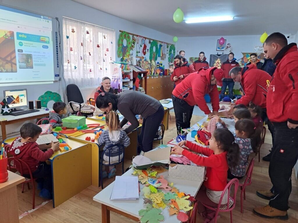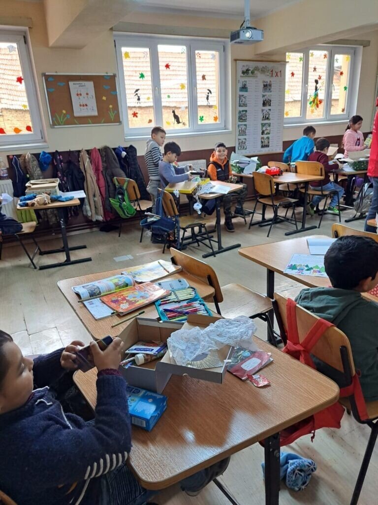 Elevii cei mici de la Școala din Merghindeal au avut parte de o supriză în ajun de Moș Nicolae. Membrii Asociației Masa Rotundă Sibiu, alături de doamna Rhea Anamaria Drăgan le-au oferit cadouri.