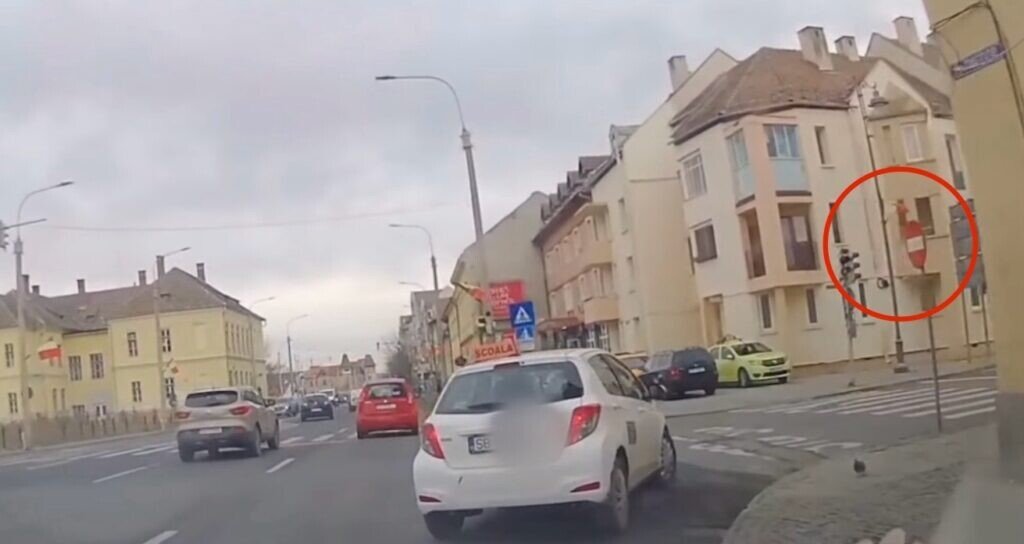 Pe rețelele de socializare a fost postată o filmare în care se poate observa cum o mașină de școală circulă pe strada Constituției din Sibiu și face la un moment dat dreapta, pe strada General Magheru, deși manevra era interzisă și semnalizată prin două indicatoare.