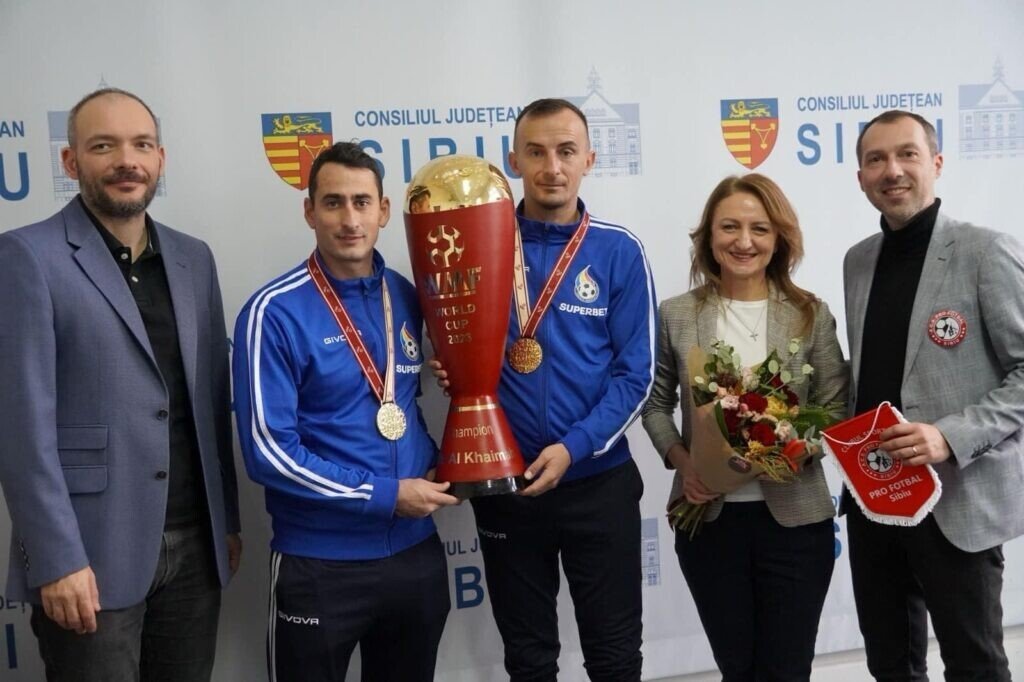 Deși pare greu de crezut, aceasta este povestea reală a doi membri ai echipei naționale de minifotbal a României, unul căpitan iar celălalt portar al acesteia, ambii din județul Sibiu. În urmă cu o lună, în Dubai, România a învins Kazahstanul, devenind campioană mondială.