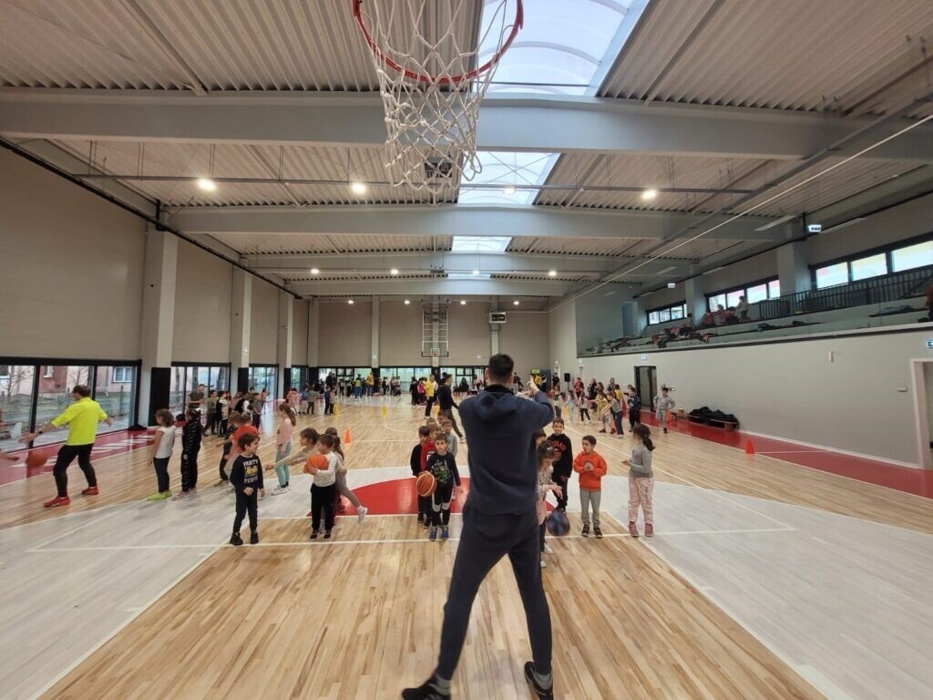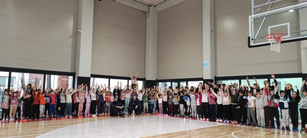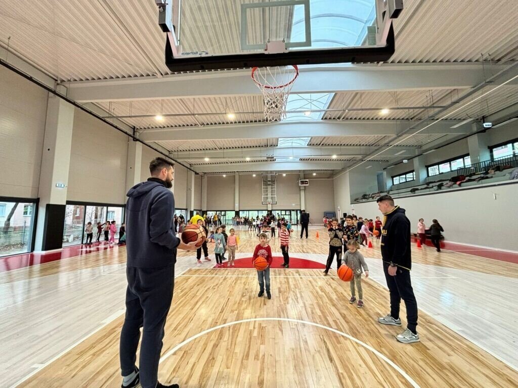 Pe lângă cele două ore de sport petrecute alături de jucători profesioniști de baschet, școala gimnazială „Nicolae Iorga” a primit mingi de baschet și maiouri de joc personalizate din partea firmei Andu.