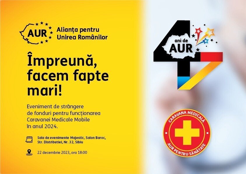 Avem deosebita plăcere de a vă informa că vineri, 22 decembrie, ora 18, la sala de evenimente Majestic, vom organiza un eveniment pentru strângere de fonduri ce va fi utilizat pentru continuitatea Caravanei Medicale și în anul 2024, an în care caravana va ajunge și la noi în județ, în perioada 22-27 ianuarie!