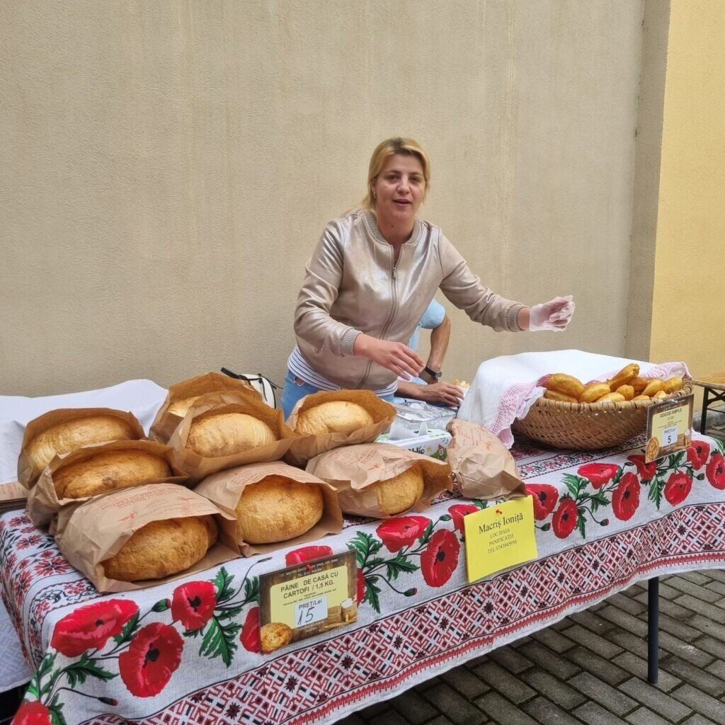 10 producători locali vor fi prezenți cu pâine de casă și patiserie (cozonaci, prăjituri), o gamă diversă de preparate din carne și lapte, cu miere, dulcețuri, siropuri, legume și conserve de legume: