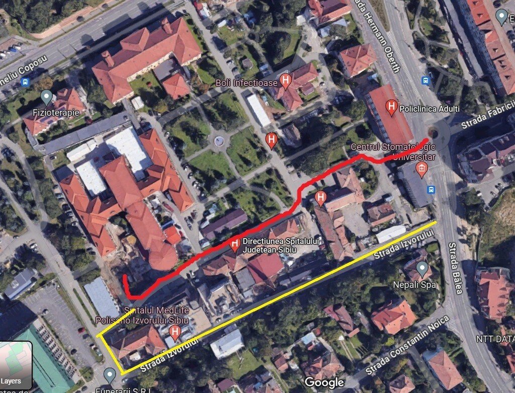 „Varianta optimă este organizarea pe Strada Izvorului, pe partea dreaptă în sensul de mers către Unitatea de Primiri Urgențe și Facultatea de Medicină, a unei benzi auto delimitată și dedicată exclusiv accesului autospecialelor SMURD, Serviciului de Ambulanță, Poliției și autovehiculelor ISU” au declarat pentru SIBIU INDEPENDENT reprezentanții Spitalului Județean Sibiu.