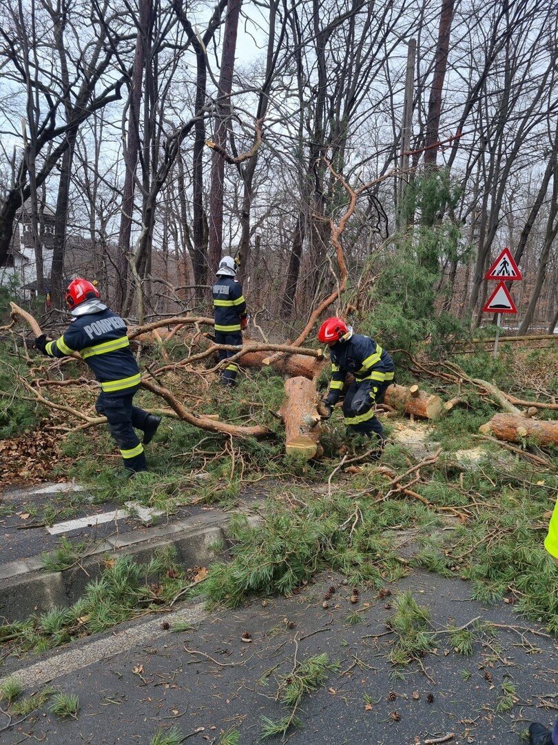 Pompierii sibieni au intervenit pentru îndepărtarea a doi copaci căzuți din cauza vântului.