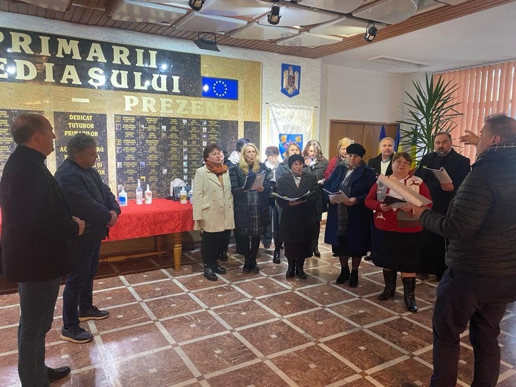 Dincolo de colindătorii din Mediaș, la ușa primarului au adus colindul și alții din comunele învecinate și nu numai.
