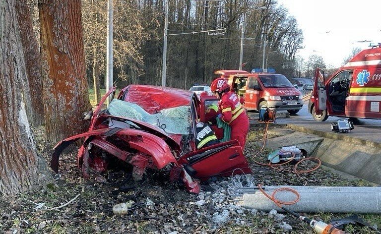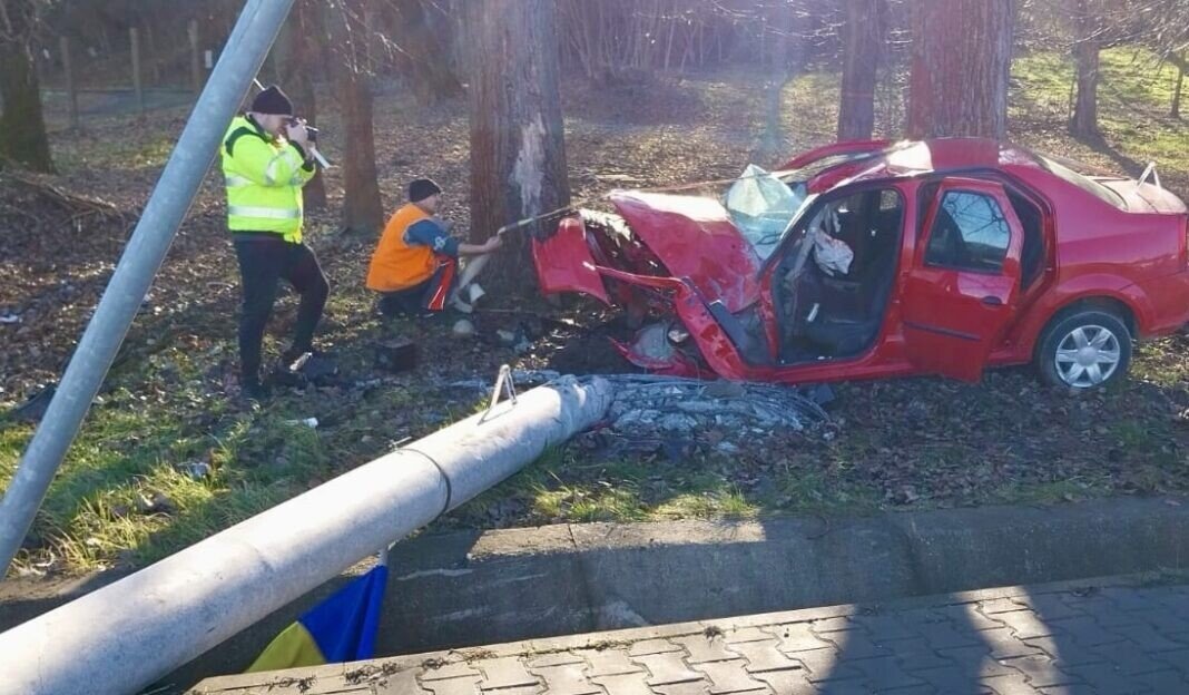 Un eveniment rutier grav s-a produs pe Șoseaua Sibiului din municipiul Mediaș. Șoferul unei mașini a pierdut controlul direcției de deplasare și a intrat puternic într-un stâlp.