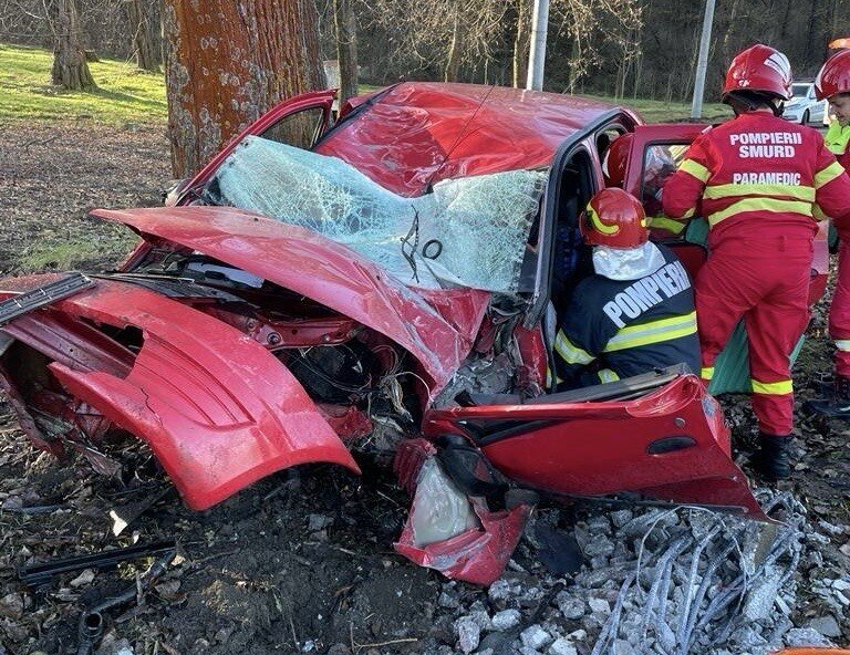 În urma impactului, șoferul a rămas încarcerat însă a fost salvat de către pompierii militari ISU SIBIU. Colizinea a fost atât de puternică încât mașina a fost distrusă în proporție de 50% iar stâlpul de electricitate a fost pur și simplu rupt.