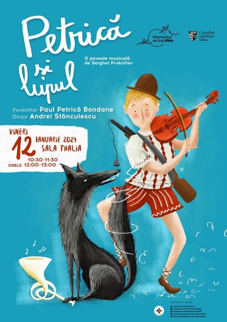 Vineri, 12 ianuarie, copiii sunt așteptați la primul concert educativ al anului: povestea muzicală „Petrică și lupul” de S. Prokofiev, în dublă reprezentație, sub bagheta tânărului dirijor Andrei Stănculescu și cu Paul-Petrică Bondane în rolul naratorului.