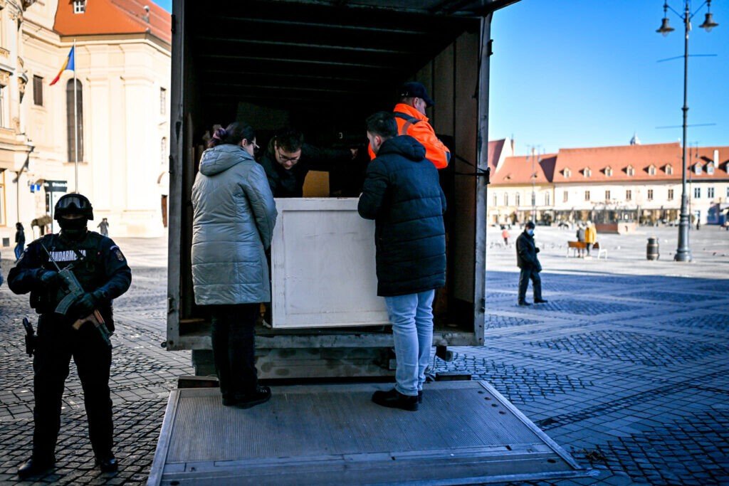 Transportul tablourilor de la Sibiu la Iași a început miercuri, când a fost planificată încărcarea și preluarea acestora, sub pază.
