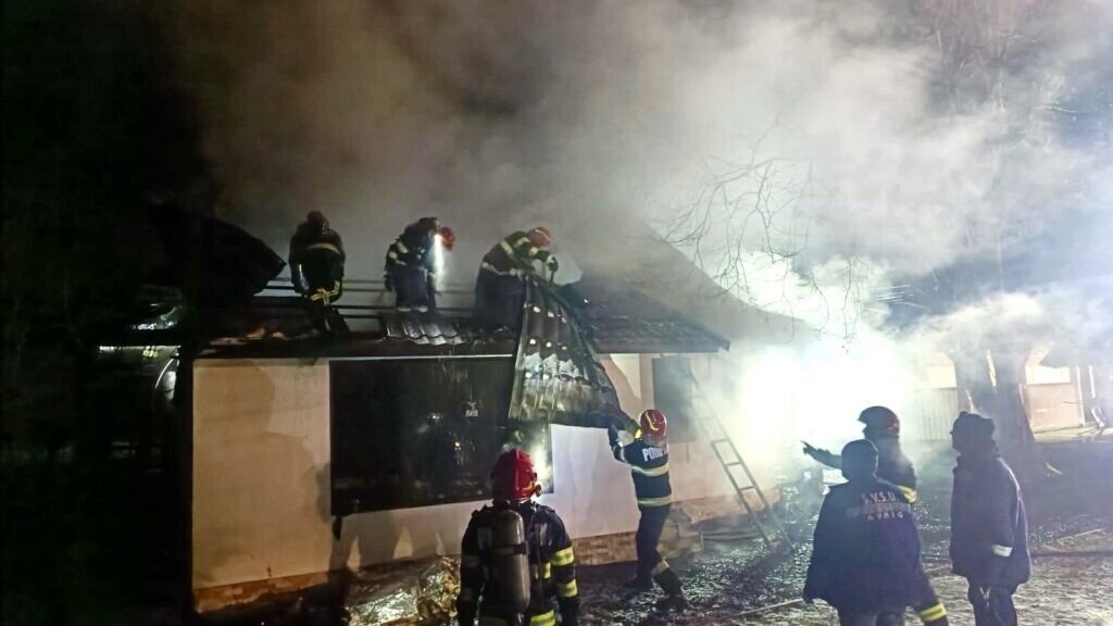 Din primele informații incendiul se manifestă generalizat la acoperișul unei cabane de aproximativ 80 mp.