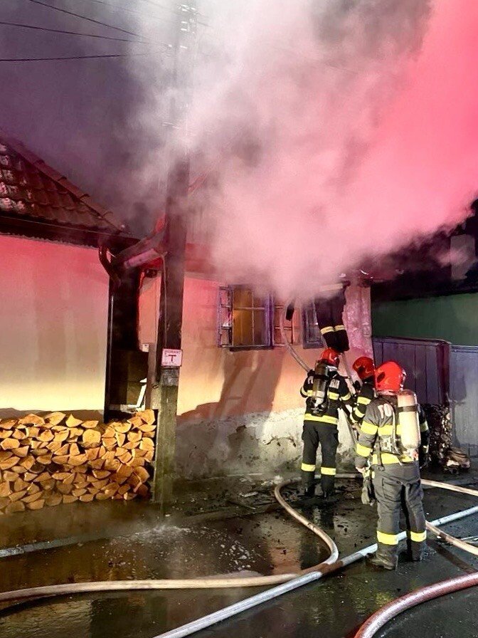 O casă din localitatea sibiană Rășinari, a luat foc în această seară, în jurul orei 22:15. Conform primelor date, există pericolul ca focul să se extindă și la casa vecină.