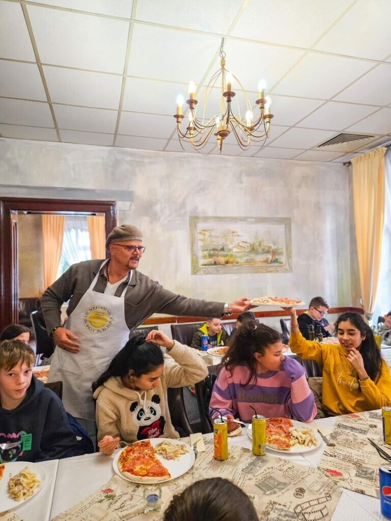 „Pizza, paste ,sucuri și pachetele cu dulciuri ,sunt doar câteva dintre preferințele, pe care ne-am bucurat să le oferim astazi, într-o atmosferă caldă și prietenoasă.