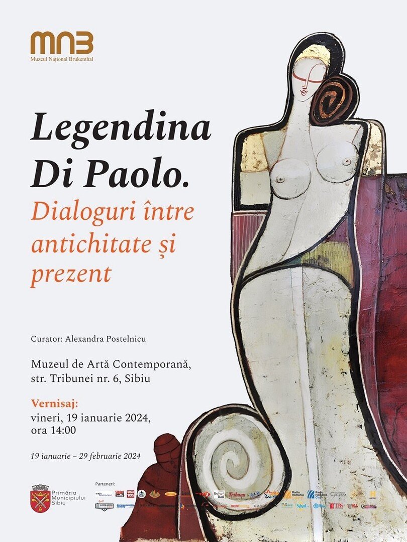 Vineri, 19 ianuarie, ora 14.00, la Muzeul de Artă Contemporană (strada Tribunei nr.6) va avea loc vernisajul expoziției Legendina Di Paolo: Dialoguri între antichitate și prezent. Expoziția își propune să îndrume vizitatorul într-o călătorie în timp, oferindu-i posibilitatea de a cunoaște și explora cele mai frumoase opere de artă ale celebrei pictorițe române Legendina Di Paolo (Reghin, România 1939–Lugano, Elveția 2017). Opera artistei îmbrățișează cu eleganță subiectele clasice din antichitatea greco-romană și pe cele ale căror teme sunt strâns legate de conceptele de viață, regenerare și metamorfoză. Prin intermediul acestora, Legendina Di Paolo povestește complexitatea propriilor trăiri: abandonul patriei natale, necesitatea de a se adapta la o nouă viață într-o țară străină, concomitentă cu căutarea neîncetată a unei identități stilistice proprii.