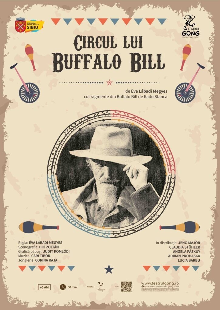 „Circul lui Buffalo Bill” este un spectacol de inspirație western, ce îmbină arta animației cu elemente de jonglerie și acrobații într-o poveste despre vise, iluzii și Vestul Sălbatic. Cu scene ample, pline de suspans, dar și mult umor, producția de la Sibiu surprinde prin caracterul muzical și interactiv al spectacolului, ce va face deliciul celor mai mici dintre spectatori. Născut în Iowa – Statele Unite ale Americii, William Frederick Cody a devenit cunoscut în întreaga lume sub numele de Buffalo Bill, creatorul unora dintre cele mai spectaculoase numere de circ, redefinind industria divertismentului din secolul al XIX-lea.