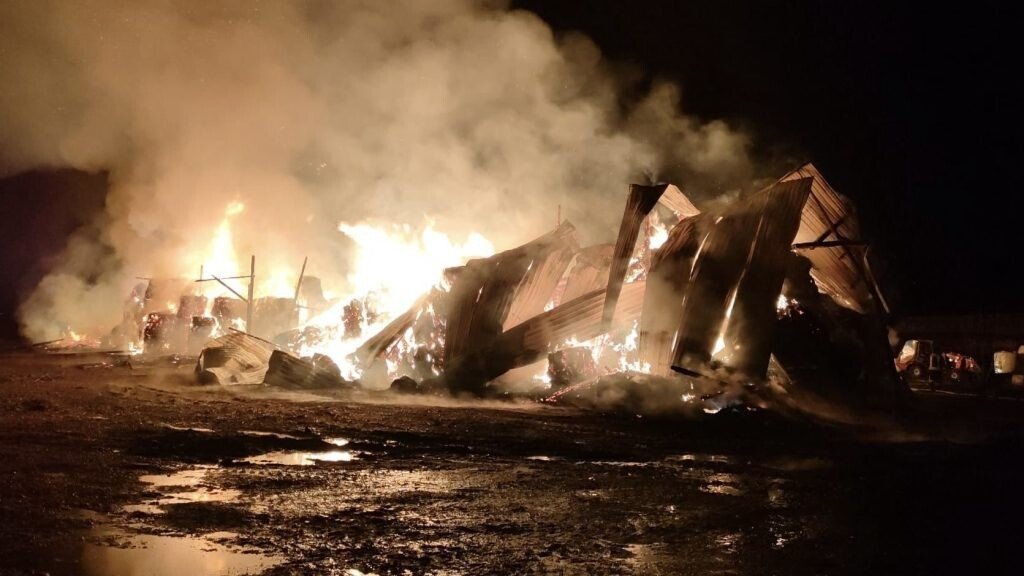 Un incendiu violent a izbucnit în această seară, la mai mulți baloți de fân din localitatea sibiană Ruși.